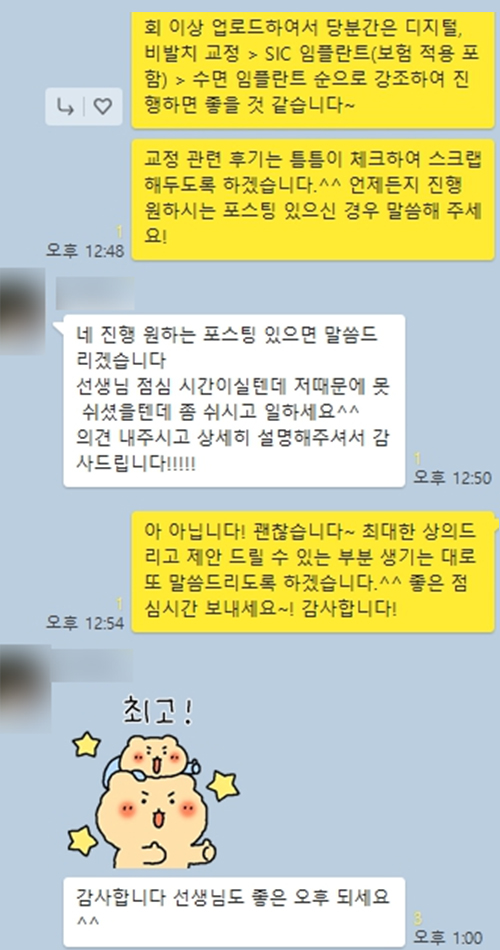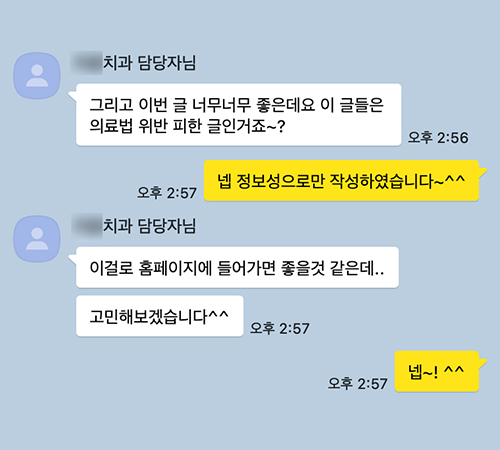 치과와 충분한 의견 조율을 거쳐 콘텐츠의 방향부터 명확히 설정합니다.