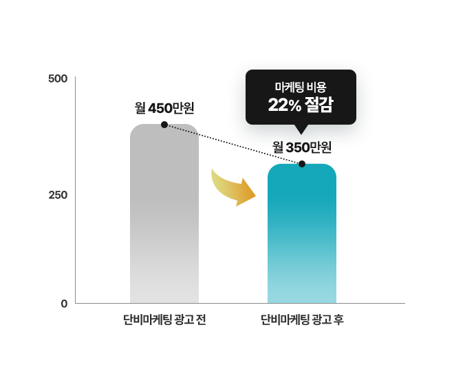 동시에 마케팅 비용은 22% 절감되었습니다.