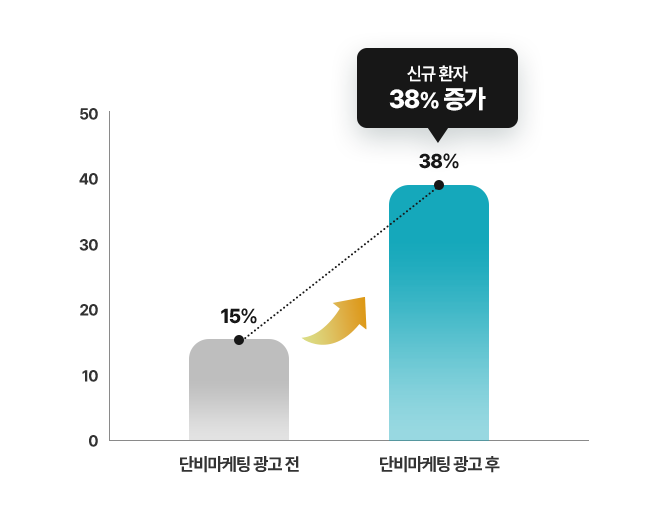 신규 환자 30% 증가, 매출 1.5배 상승을 기록했습니다.