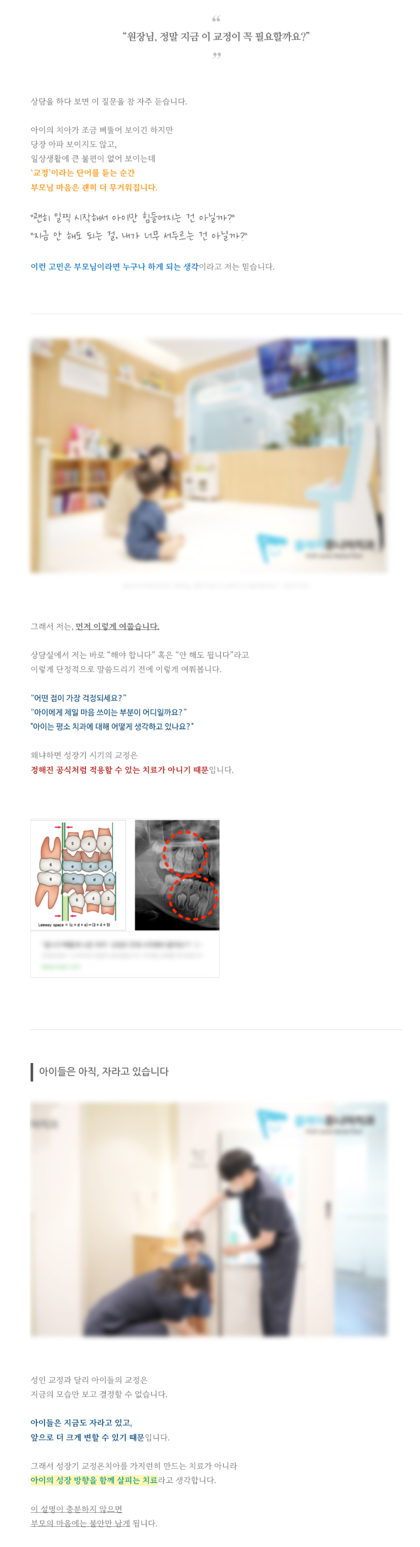 치과와 충분한 의견 조율을 거쳐 콘텐츠의 방향부터 명확히 설정합니다.